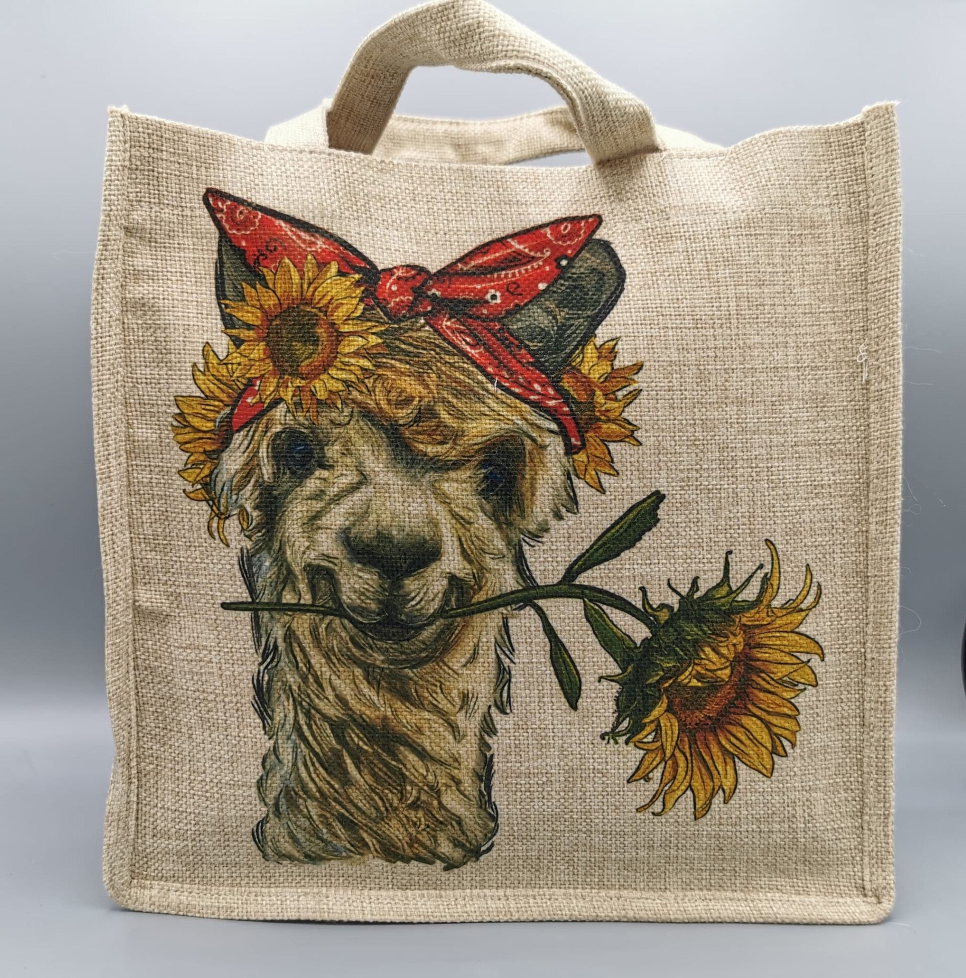 Tasche mit strukturierter Leinenoptik in Natur mit tollen Motiven (Sublimationsdruck).