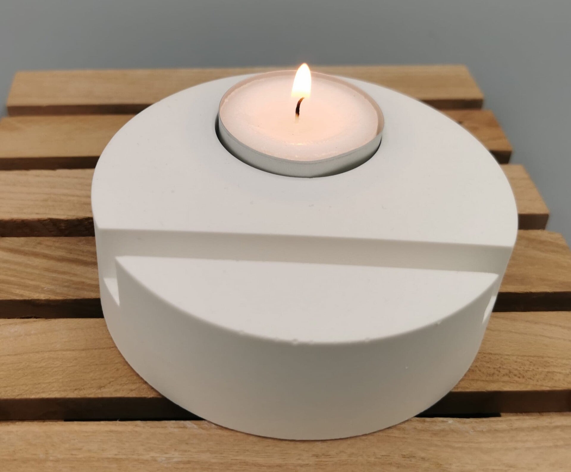 Der halbrundehalter eignet sich für Teelichter.